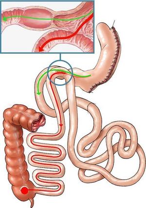 50% van het voedsel loopt wel nog steeds langs de natuurlijke weg waardoor er minder malabsorptie problemen worden gezien bij deze ingreep ivm de mini gastric bypass